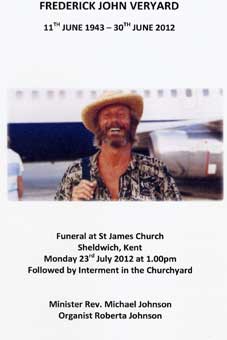 he had a great send off at his funeral at St James Church, Sheldwich, Kent .