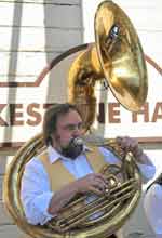 Gerry Birch - Sousaphone / Double Bass Born in Essex in 1953. At the age of 10, I joined my local Brass Band where I learnt to play Trombone. I soon realised that this wasn’t the instrument for me and took up Tuba. I moved to Kent in 1972 and joined a local brass band. One evening, on the way home from band practice, I called into a pub for a pint and heard my first LIVE jazz band and the rest is history. I bought a Sousaphone and started listening seriously to records. My first playing experience was with the Expedient Brass Band from Sussex, which led on to a regular Friday night gig with the New Orleans Echoes, which at that time was run by trombonist Mark Bradley. The next 10 years or so was spent playing with many of the Kent an Sussex bands. I left Kent in 1988 and had 15 years in East Anglia, before moving back to Kent in 2003. Over the years I have played with many semi pro bands up and down the country . Although I have always been busy in the Summer, I found that Sousaphone was not always popular during the winter ,when the Summer Fetes had finished, so I took up string bass. At the time of writing I am running a local Jazz Club and have just formed my own band ; The Stour Valley Jazzmen. Back to top Index back to music/video index