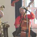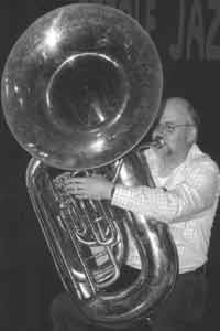 Born 1942 in Speldhurst, but grew up in Ramsgate. Started playing (guitar ) in 1957 in a skiffle group. Played trombone for a couple of years but switched back to guitar in a university band. Played guitar in various bands on the London circuit in 1960's. Took up the bass in 1969. On return to Kent played bass ( and did vocals ) successively with Bod Bowles, Pete Rose, Bill Barnacle and the Imperial Jazz Bands, recording with the last three. Has also played in Hot Club style groups, dance bands, barn-dance outfits etc. Wrote arrangements for Latin American Street Band "Busker Du" in which he played tuba. Currently arranging for and accompanying a choral group. Formerly a science lecturer, he still teaches part-time for the Open University. Plays cricket occasionally and has just retired from the role of rugby coach.